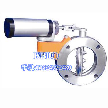 GIQ(D)型高真空蝶閥是由執行機構(氣動,電動)與轉角型蝶閥體二部份組邁出,中間由支架相連而邁出.以GIQ型為例:執行機構是由雙氣路氣缸為讓體,接受二位四通電磁閥控制輸出的(0.4-0.6MPa)氣源信號壓力為動力,通過控制元件改變氣流方向,執行氣缸驅動蝶閥作啟閉運動.